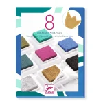 En pakke med 8 flotte metalliske stempelpuder i flotte farver samt én renser.