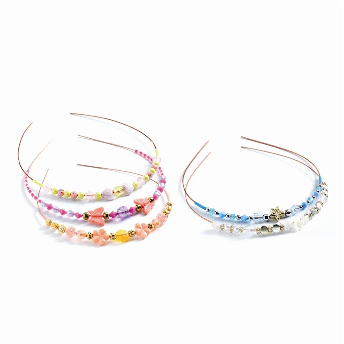 Med denne flotte kreative æske fra Djeco kan du nemt og praktisk lave dine egne hårbøjler. Læg de flotte perler i den rækkefølge du kunne tænke dig i rillen, inden de sættes på bøjlen.