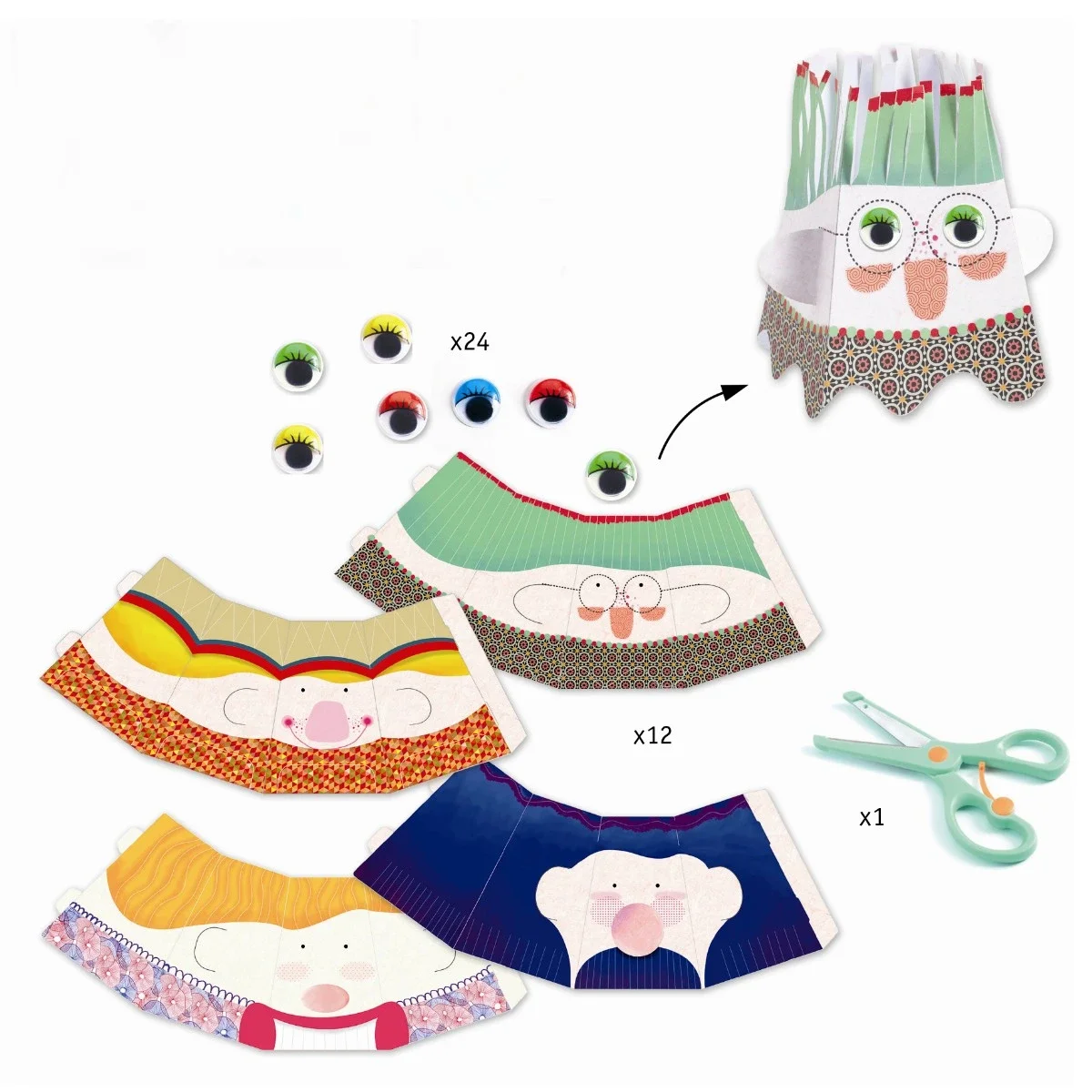 En sjov kreativ æske fra Djeco hvor du skal klippe håret eller skægget og samle det til nogle sjove, sjove venner.