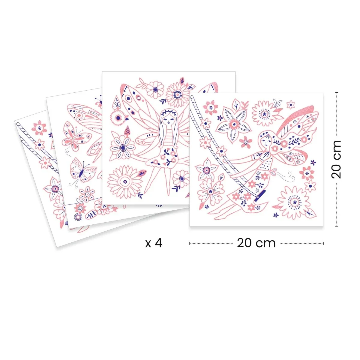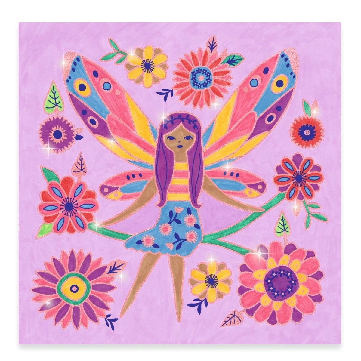 De 4 forskellige flotte billeder skal farvelægges. En tyk hævet kant sørger for, at du ikke tegner uden for stregen. En metallisk lak lyser billedet flot op. Der medfølger en farvet udgave at billederne som inspiration af farvevalg for hvert billede. Når du vælger en kreativ æske fra Djeco, er du altid sikker på, at resultatet bliver flot.