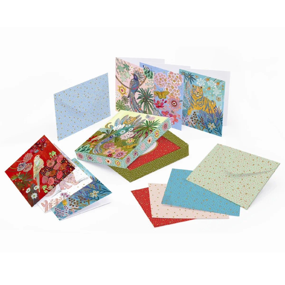 Den smukkeste æske fra Djeco, der indeholder 6 flotte dobbeltkort samt 6 matchende kuverter. Genopdag den gamle, hyggelige tradition, med at sende søde breve til familien samt venner.