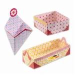 Fin pakke bestående af smukt, mønstret papir, hvor man kan lave fine små æsker, til opbevaring af små skatte og hemmeligheder. Æskerne dekoreres med de medfølgende klistermærker.