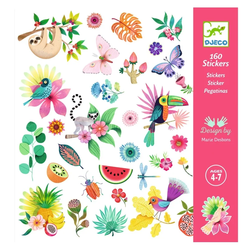 De flotte farverige klistermærker fra Djeco kan sætte kolorit på gavepakker, indbydelser og mange andre steder. 160 klistermærker i alt.