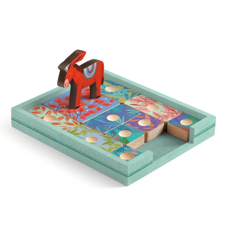 Det flotte spil fra Djeco er et rigtig hjernevrider spil. Du skal skubbe rundt på brikkerne på pladen (de må ikke forlade pladen), for at få æslet ud fra pladen ved åbningen. Det er slet ikke så nemt.