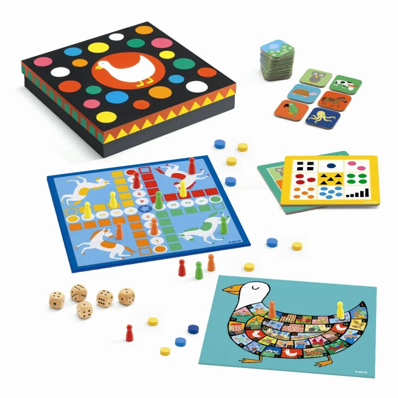 En sjov og dekorativ æske fuld af sjove klassiske spil designet til de mindre børn.
