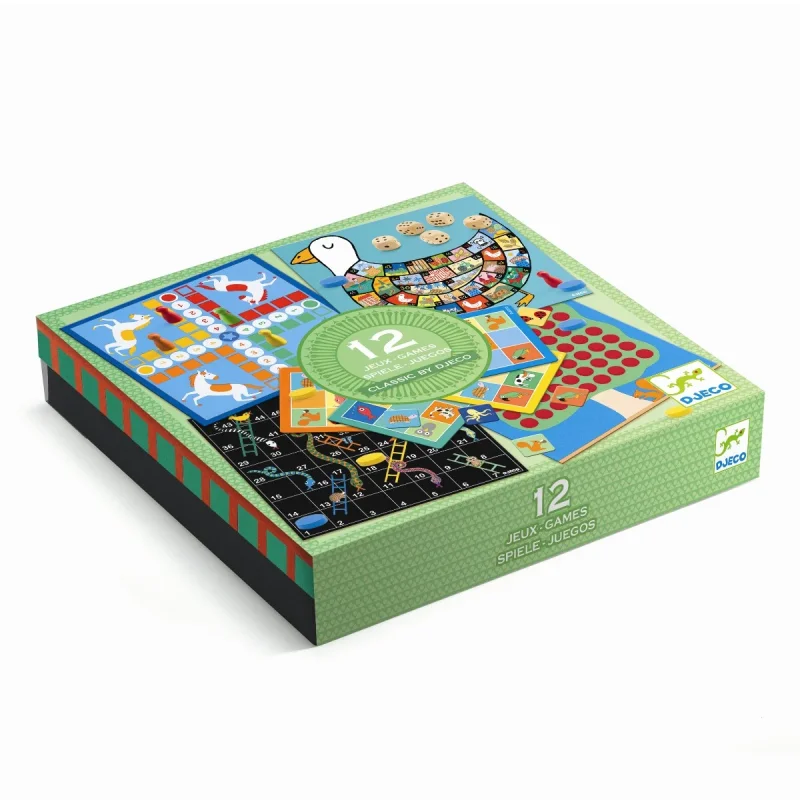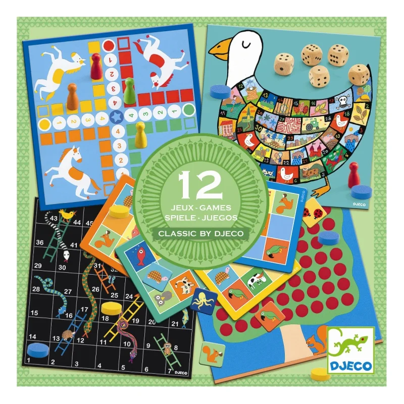 Æsken indeholder 12 forskellige klassiske spil, så som gåsespil, ludo, yatzy, billedlotteri m.m.