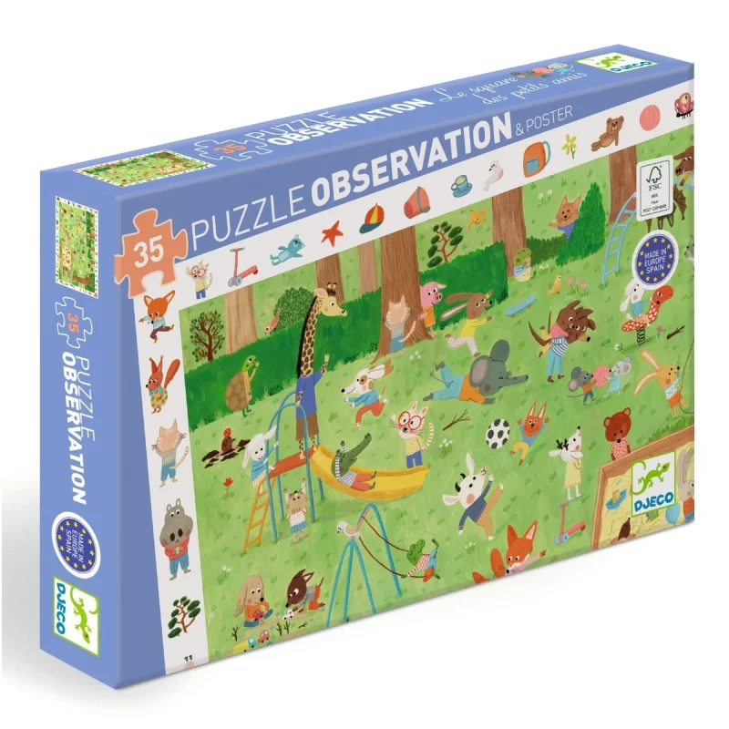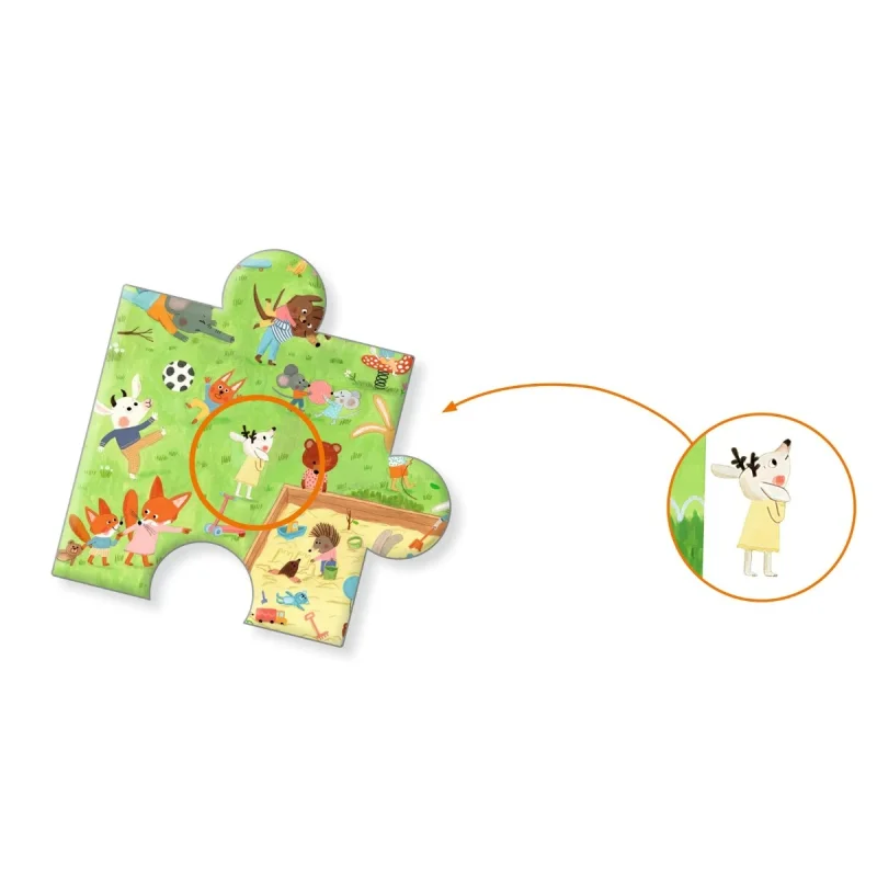 Det originale observationspuslespil fra Djeco er ikke kun sjovt mens du lægger det. Når puslespillet er lagt, kan du bruge lang tid på, at gå på opdagelse i motivet. Se om du kan finde alle de mange små motiver, der er tegnet rundt på rammen i selve motivet. Mange timers underholdning. 35 brikker.