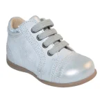 Lækker begyndersko i læder fra Move by Melton i sølv skind. Skoen lukkes med snørrebånd så den altid sidder godt på foden og skoen har en gummi sål.