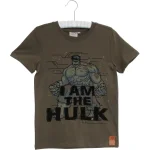 Kortærmet t-shirt i blød økologisk bomuld. T-shirten har et sejt håndtegnet print af Hulk i velour foran.