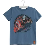 Kortærmet T-shirt i blød økologisk bomuld. Den har et unikt og håndtegnet print af Captain America foran.
