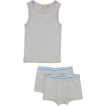 Blødt undertøjssæt med 1 tanktop samt 2 boxershort til juniorbarnet. Toppen er simpel i sit udtryk med brede stropper. Skøn at have indenunder en langærmet t-shirt eller strik. Underbukserne har stribet linning samt elastik i taljen.