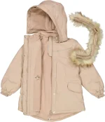 - Aftagelig- og justerbar hætte med aftagelig imiteret pels
