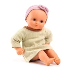 Den søde dukke fra Djeco har en fin pistacie grøn kjole på i muselin. Hun har brune øjne og en blød krop, der gør det nemmere, når barnet skal klæde dukken af og på. Dukken kan maskinvaskes på skåneprogram i vaskepose. Kroppens fyld er af 100% genanvendelig fiber.