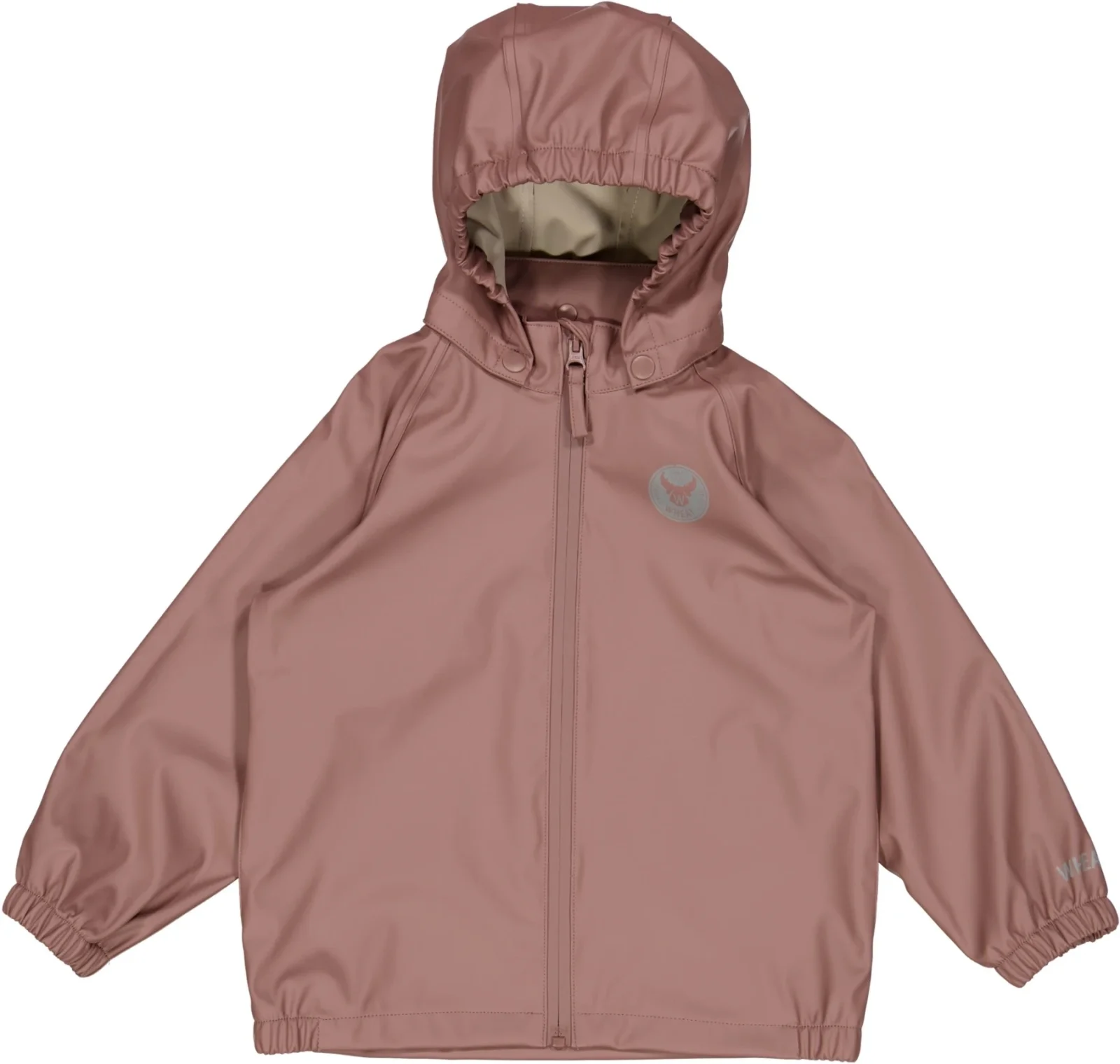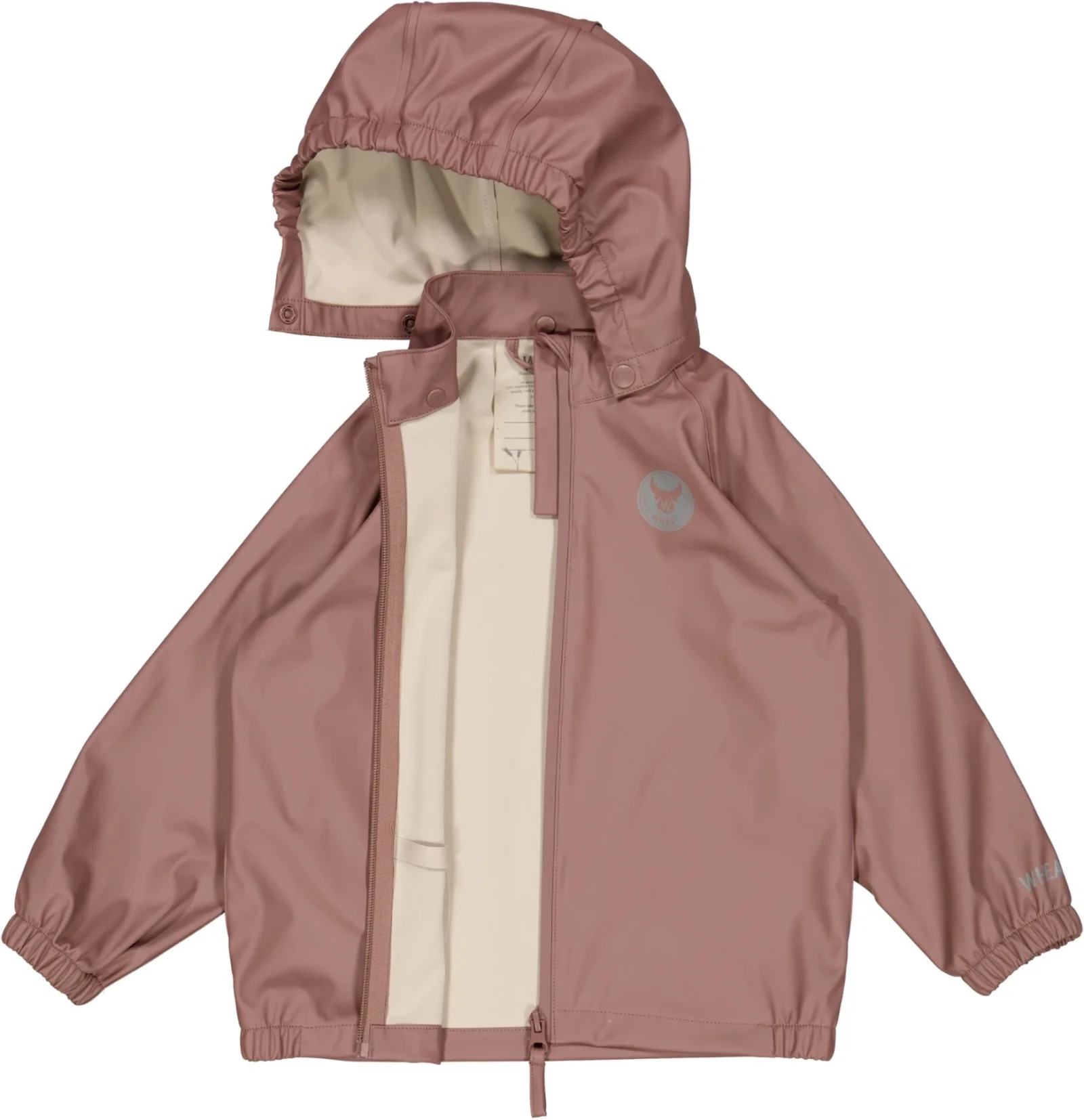Dette ensfarvet regntøj kommer som et sæt med jakke og dertilhørende buks til juniorbarnet. Regnjakken har aftagelig hætte, elastik ved ærmerne og vandtæt lynlås med hagebeskytter. Sættet er i et letvægtsmateriale, så det ikke er tungt for dit barn at bevæge sig omkring i. Desuden er der Wheat logo som refleksdetaljer flere steder.
