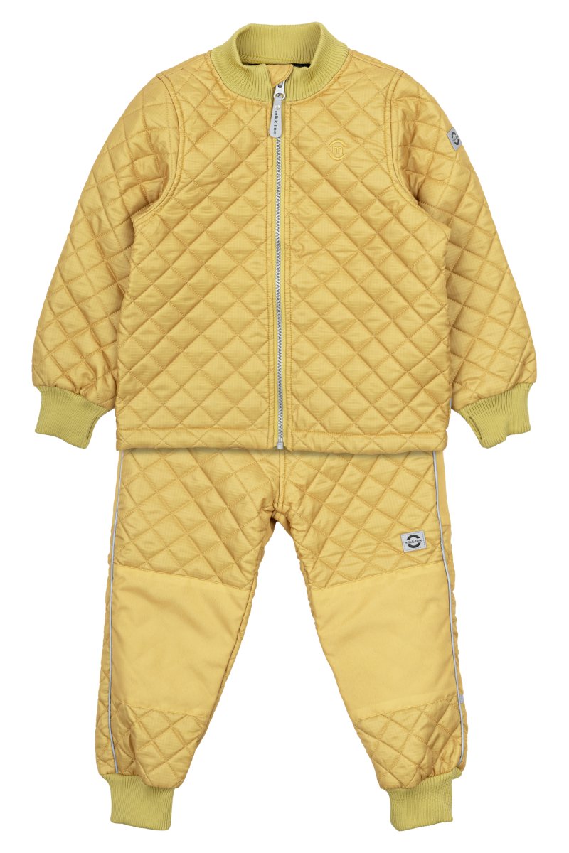 Mikk-Line Termotøj - Uden foerLækkert termosæt fra Mikk-Line. Sættet består af jakke samt bukser. Termojakken har en gennemgående lynlås foran. Der er høj hals i en blød rib samt ribkant ved ærmegab med hul til tommeltot. Jakken har en tværgående refleks bagpå, så barnet lettere bliver set i de mørke timer. Termobukserne har elastik i livet og kan justeres med knapper indvendigt. Der er ribkant ved anklerne. Termobukserne har et ekstra slidstærkt materiale på knæ og numsen.