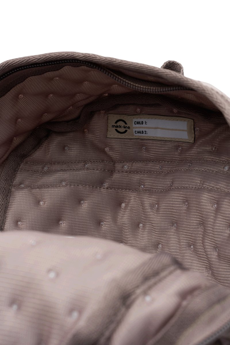 Mikk-Line børnehavetasken består af et stort rum, der åbnes med lynlås, og på fronten sidder der en stor lynlåslomme. Børnehavetasken har en vatteret ryg, og den har brede, vatterede skulderremme, som kan justeres i længden samt et justerbart brystspænde med et klikspænde.
