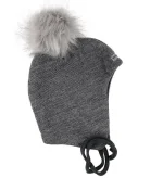 Racing Kids - Wool Baby Helmet With Pompom - Dark Grey MelangeFin og praktisk uld hue med kvast på toppen i faux fur