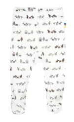 Rigtig fine leggings i økologisk bomuld. Råhvid med print af dyre liv i dusede jordfarver.