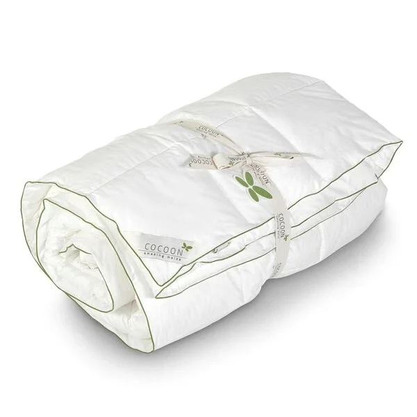 Medium varm dyne til helårsbrug.Cocoon majsdyner og majs puder er en økologisk serie af bæredygtige produkter med majsfiber og GOTS certificeret bomuld.