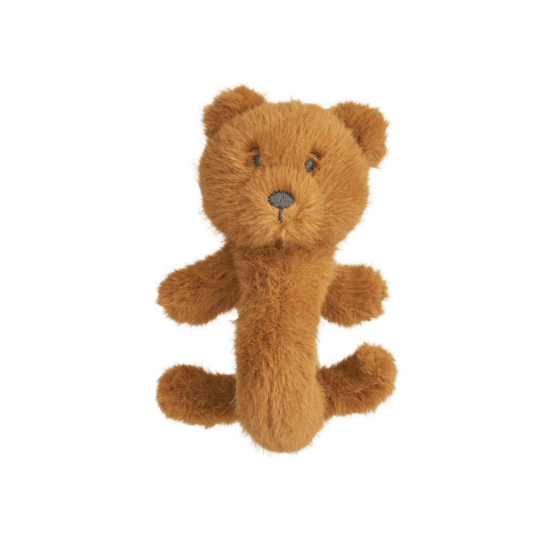 Formet som en lille bjørn, gør vores plysrangle til en sød ven at have med på barnevognsture eller ved pusletid. Klokken inden i og det super bløde plysmateriale giver sensorisk og motorisk underholdning for de mindste. Perfekt som gave til nyfødte og babyer.