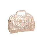 Sun Jellies retrotasker tager dig med tilbage til 80’erne. De flotte kurvetaske er lavet af 100% genanvendeligt plastik. Mønstret er det originale fra 1980'erne og konceptet er stadig det samme og samles ved hjælp af små plastdutter.Brug Sun Jellies tasken til opbevaring af legetøj, badetøj, strandlegetøj og andet nip eller som rigtig håndtaske.