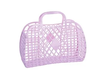 Sun Jellies retrotasker tager dig med tilbage til 80’erne. De flotte kurvetaske er lavet af 100% genanvendeligt plastik. Mønstret er det originale fra 1980'erne og konceptet er stadig det samme og samles ved hjælp af små plastdutter.Brug Sun Jellies tasken til opbevaring af legetøj, badetøj, strandlegetøj og andet nip eller som rigtig håndtaske.