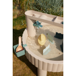 Multi-aktivitets legebord til sjov og kreativ legetid.  Uendelige muligheder til brug med vand, som sandkasse, til legetøjsopbevaring eller som tegnebord. Er nemt at samle og skille ad uden skruer. Leveres med møller og en overliggende bro med si og plads til tilbehør.