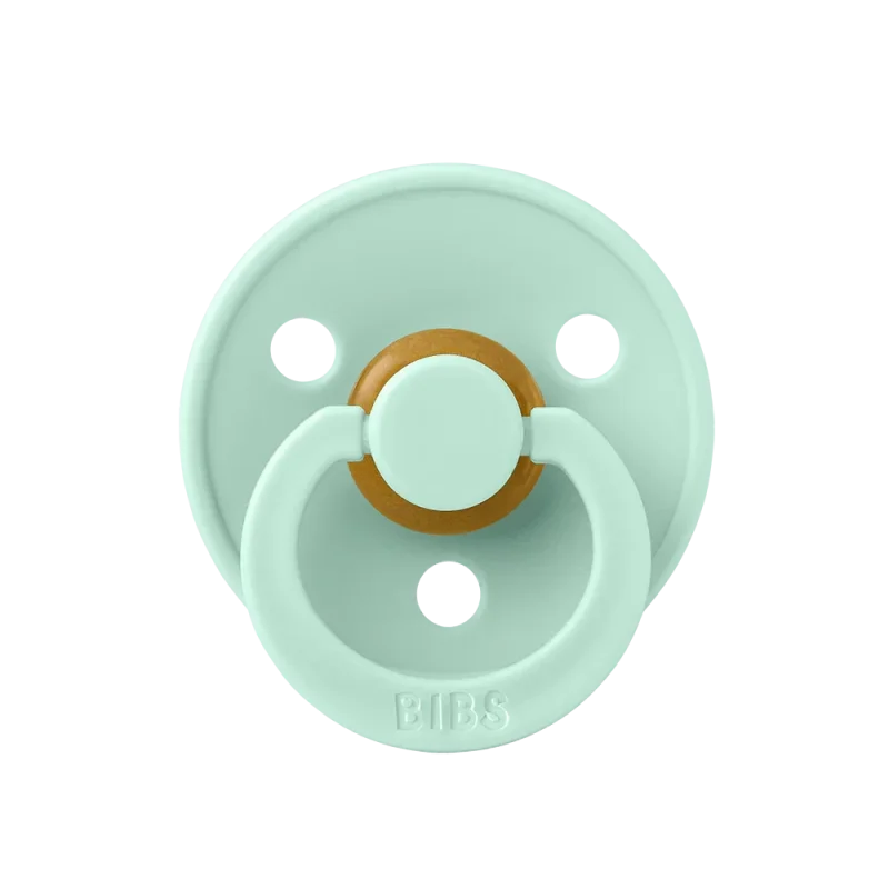 BIBS Pacifier Colour Latex Size 2 (6-18 mdr.)Bibs sut i latex (naturgummi) med rundt skjold (1 stk). Naturgummi har en elastisk og blød konsistens der føles trygt og behageligt at sutte på. Latex er stærkere end silikone og sværere at bide i stykker. Bibs sutter anbefales, da de styrker vigtige muskler i tungen samt den korrekte sutteteknik. De er derfor gode til at understøtte amningen.