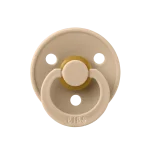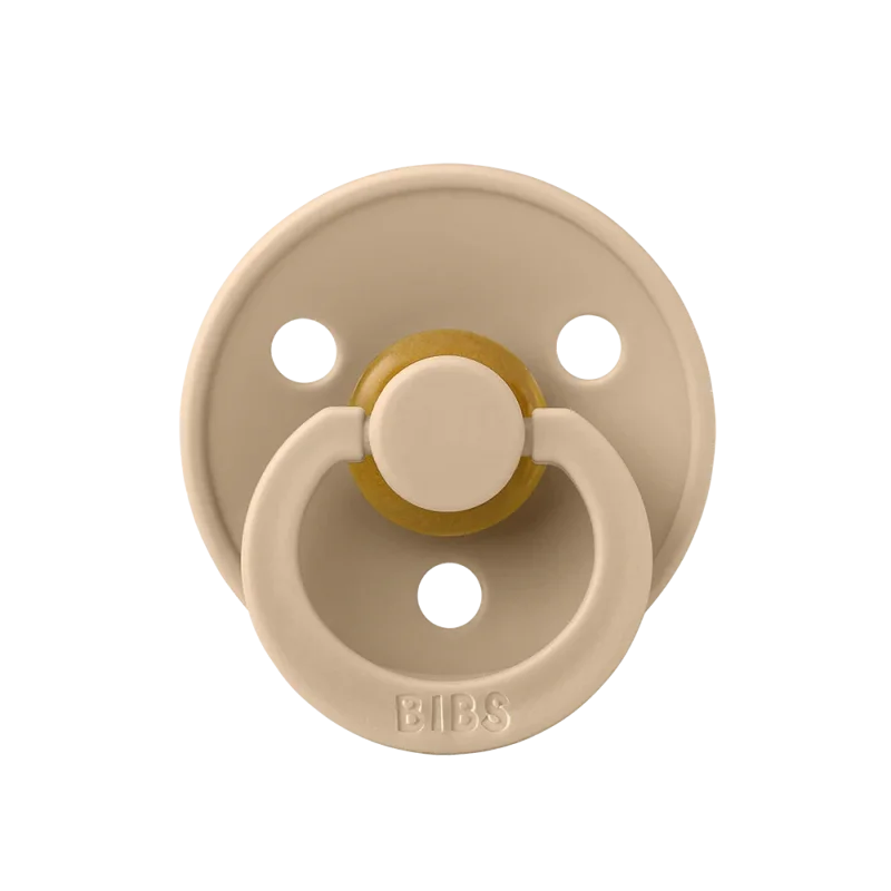 BIBS Pacifier Colour Latex Size 1 (0-6 mdr.)Bibs sut i latex (naturgummi) med rundt skjold (1 stk). Naturgummi har en elastisk og blød konsistens der føles trygt og behageligt at sutte på. Latex er stærkere end silikone og sværere at bide i stykker. Bibs sutter anbefales, da de styrker vigtige muskler i tungen samt den korrekte sutteteknik. De er derfor gode til at understøtte amningen.