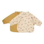 Hagesmækken har lange praktiske ærmer og fås i 2-pak med forskellige print og farver