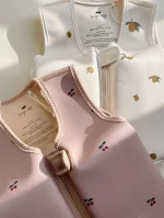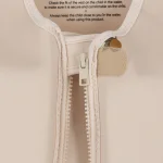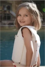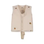 Vesten er med lynlås og lukkes med strop mellem benene som forhindre vesten i at ryge over hovedet.Vesten kommer i 3 størrelser:1-2år - op til 11kg