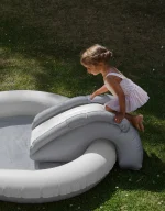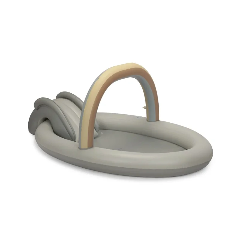 Konges Sløjd Rainbow Pool GreenOppustelig pool af slidstærk PVC, designet med en regnbueformet sprinkler og en rutsjebane.