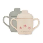 Kop med to praktiske håndtag lavet til små hænder. Designet med aftageligt låg med en lille drikketud. Koppen kan bruges uden låg, når barnet er større. God til at øve sig på at drikke selv.