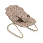 Stolen er enkel i designet og minder om den man kan bruge til rigtige babyer. Stolen kan vippe, har sele i livet og betræk med det fine flower bouquet print.