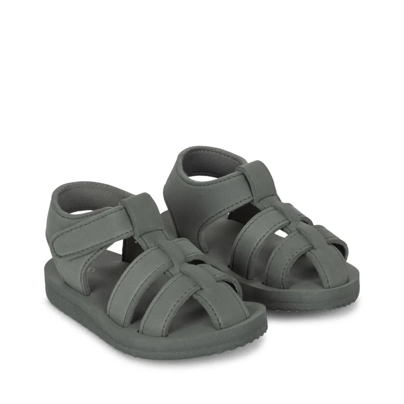 Lette sommer-sandaler i neopren og polyester med sål af EVA-skum. Designet med tre stropper fortil og justerbar hæl med velcrolukning.