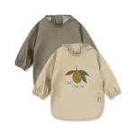 Hagesmækken har lange praktiske ærmer og fås i 2-pak med forskellige print og farver