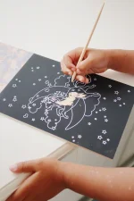 My scratch book fra Konges Sløjd, er med 15 A5 sider med "skrabe motiver", som giver masser af muligheder for kreativ udfoldelse. Der medfølger 1 bambus pen til at skrabe fine motiver frem med.