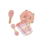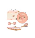 Sødt musiklegetøj med fine farver fra Konges sløjd. Legetøjet består af tamburin, kastagnette, maracas og xylofon med trommestikker. Et sjovt legetøj som også er flot at have liggende fremme på børneværelset. Sættet kommer i en flot kuffert.