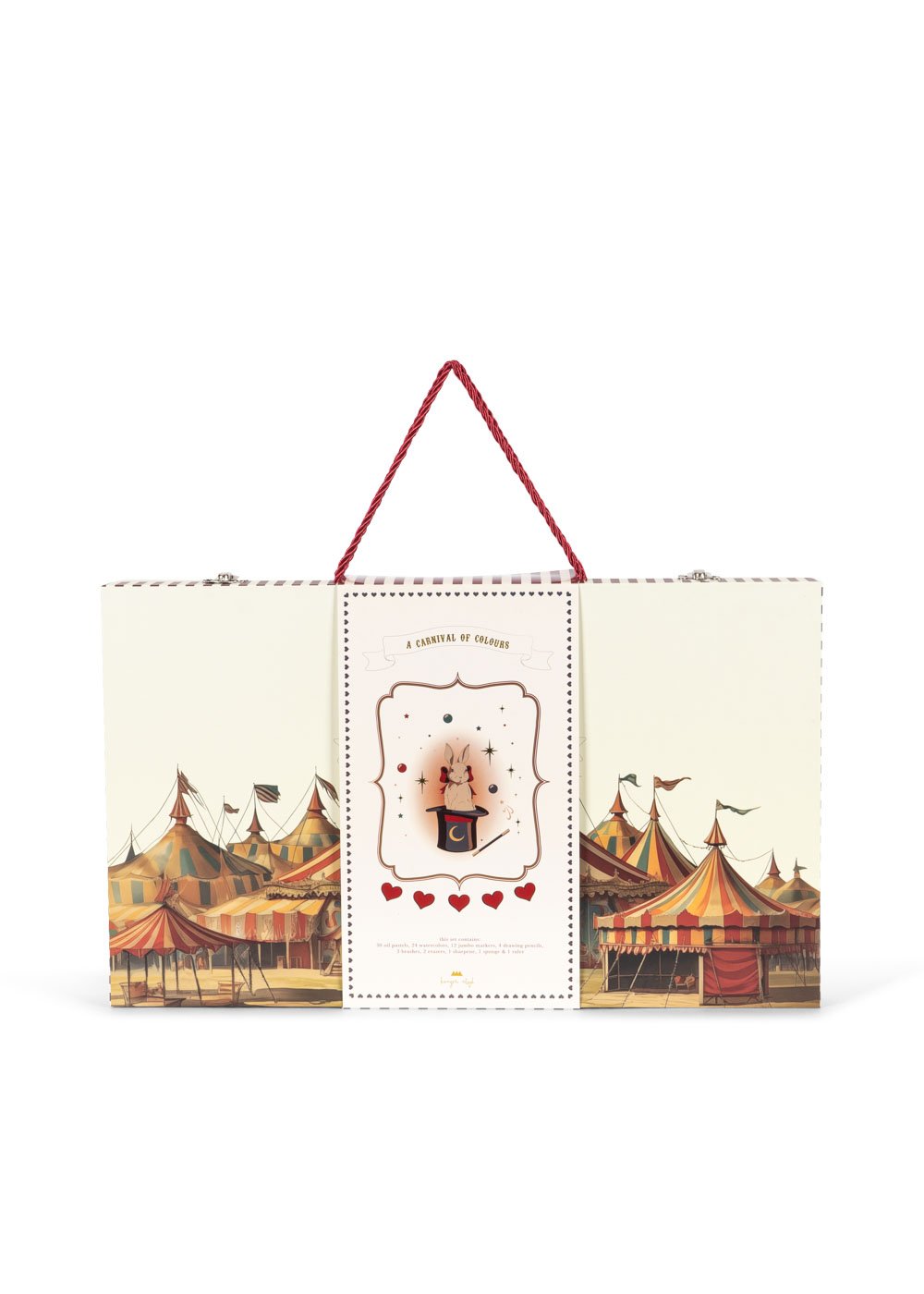 Et komplet sæt til små, spirende kunstnere med alt, hvad de behøver for at udtrykke sig gennem forskellige kunstformer. Sættet indeholder i alt 102 elementer: 30 oliepasteller 24 vandfarver 24 farveblyanter 12 jumbotusser 4 tegneblyanter 3 børster 2 viskelædere 1 blyantspidser 1 svamp 1 lineal