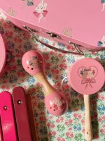 Sæt med musikinstrumenter til små musikere i en dekorativ snørepose. Leveres i en papkuffert. Indeholder: – Maracas – Xylofon – Håndtromme – Tamburin Materialer: Maracas: tetræ Xylofon: bøgetræ Håndtromme: bøgetræ Tamburin: krydsfiner Snørepose: bomuld Mål: L: 18 x B: 13 x H: 5 cm Dette produkt er fremstillet af FSC™-certificeret bøgetræ, krydsfiner og tetræ. Licensnummer: FSC C177572 Egnet fra 3 år