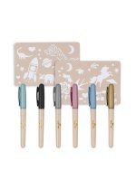 6 tatoveringstusser i forskellige farver og 20 genanvendelige klistermærkeskabeloner til brug på huden.