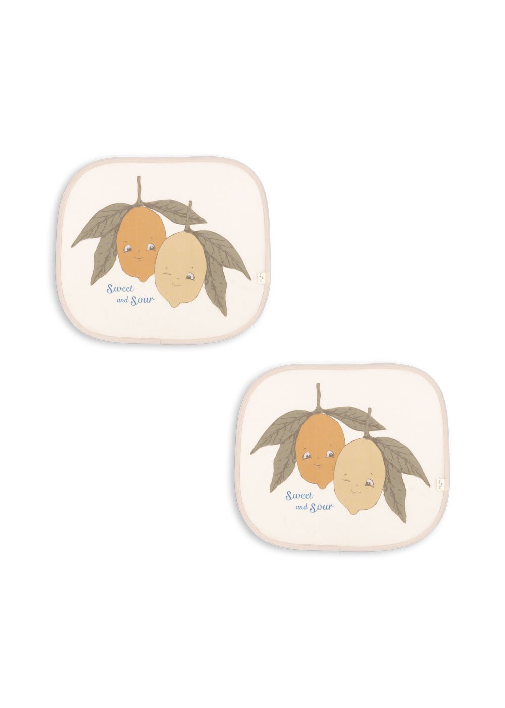 Sæt med to solskærme til bilturen. Let at bruge og sjov at se på. Nettet beskytter mod solen, men er stadig gennemsigtigt nok til, at føreren af bilen kan se gennem den. Solskærmen sidder fast ved hjælp af statisk elektricitet og er derfor nem at tage af og på uden brug af sugekop eller klæbemidler. Placer blot solskærmen på en siderude, og kør hånden hen over den for at få den til at sidde fast. Nem at folde sammen og opbevare i den medfølgende pose. Mål: 40 cm x 33 cm Materialer: 100 % polymesh og elektrostatisk PVC-film Ramme: 1,5 mm stål Egnet fra 12 måneder Må kun bruges i en bil i henhold til brugsvejledningen.