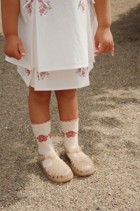 Bløde strømper med dekorativt rosenprint. Med forstærket hæl og tå, der giver en behagelig pasform.