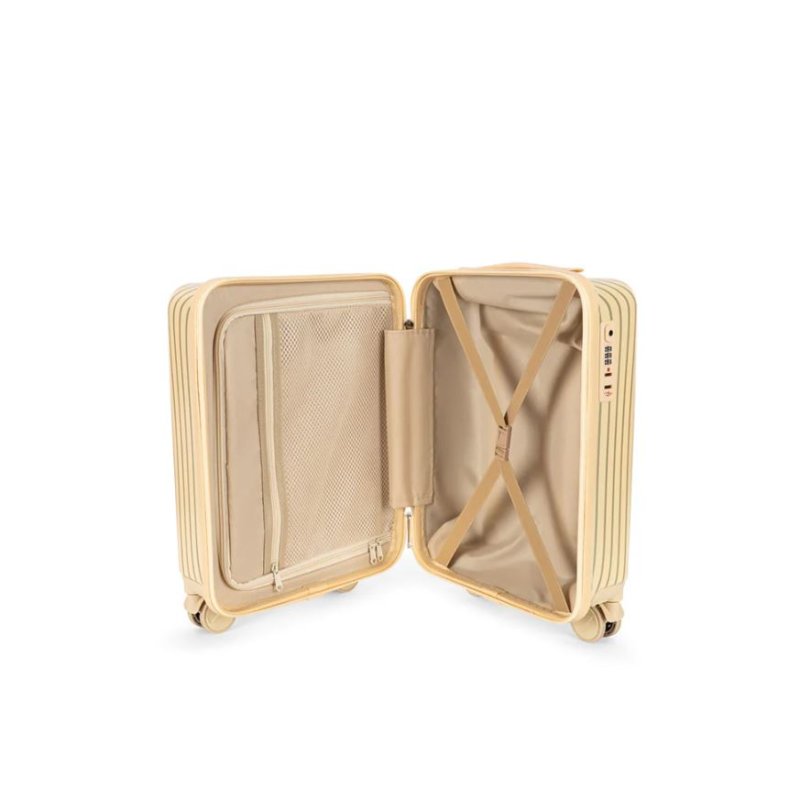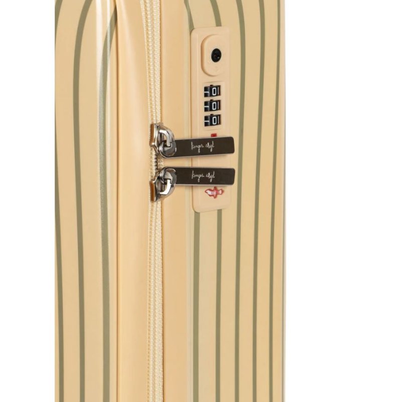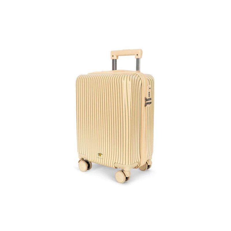 Konges Sløjd børnekuffert – Tea Stripe er let og funktionel kuffert i kabinestørrelse fra Konges Sløjd – perfekt til små rejsende. Fremstillet med hård skald, fire 360° spinnerhjul og justerbart teleskophåndtag i aluminium. Har godkendt TSA-kodelås, praktisk bærehåndtag og to separate rum med lynlåslukning og pakkestropper.