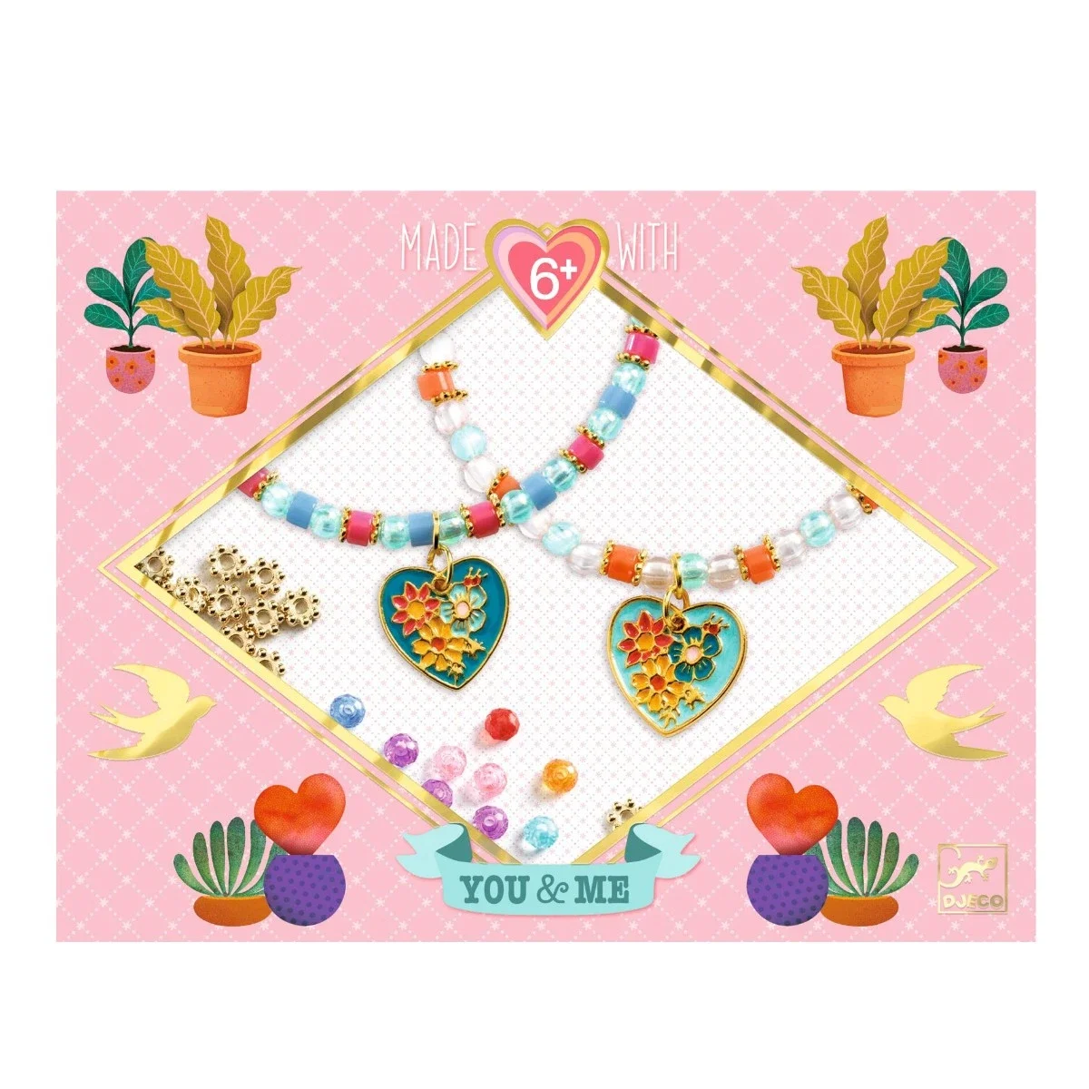 DjecoŽs Dig & Mig - serie er en skøn samling af forskellige kreative æsker. Æskerne indeholder forskelligt materiale og instruktion i at lave farverige skønne armbånd til dig og din veninde, første kæreste eller et familie medlem du holder meget af. En dejlig gave til en hjerteven eller veninde.