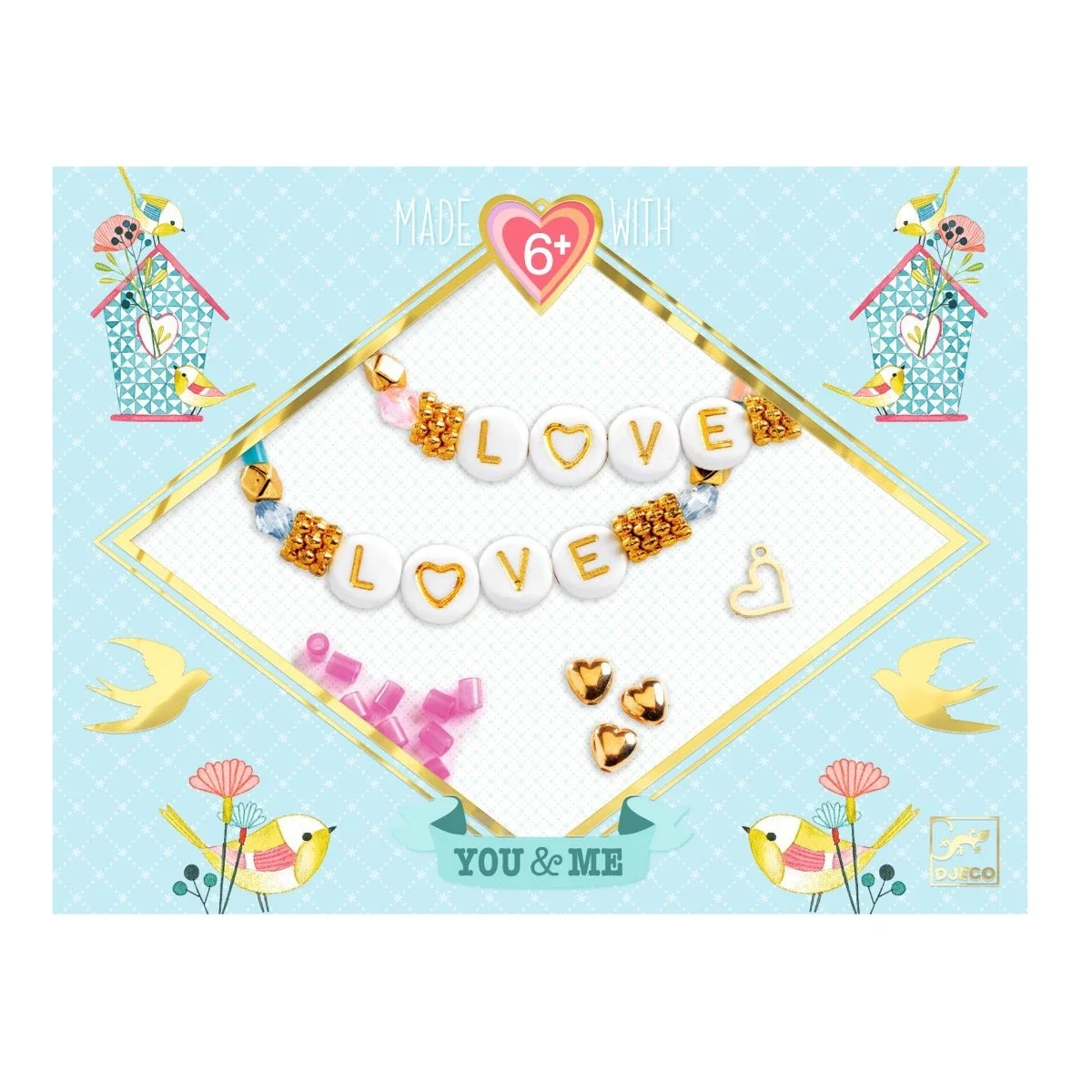 DjecoŽs Dig & Mig - serie er en skøn samling af forskellige kreative æsker. Æskerne indeholder forskelligt materiale og instruktion i at lave farverige skønne armbånd til dig og din veninde, første kæreste eller et familie medlem du holder meget af. En dejlig gave til en hjerteven eller veninde.