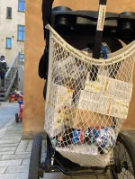 • Stort og praktisk indkøbsnet som monteres direkte på barnevognen med stærke velcro stropper