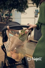 Najell Shopper Taske er designet til nemt at kunne sættes fast på enhver klapvogn eller barnevogn. Denne taske til barnevogn og klapvogn giver dig mere ledig plads til at opbevare dine indkøb eller andre varer, du samler ind i løbet af dagen. Shopper Tasken fastgøres til styret 2 steder, øverst og nederst, hvilket gør både din indkøbs- og klapvogn perfekt afbalanceret. Designet med en naturlig æstetik er den en funktionel, men stilfuld tilføjelse til enhver klapvogn eller barnevogn.
