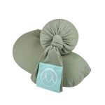 Puden er let justerbar alt efter humør og behov. Du kan ændre fastheden ved at stramme knuden. Takket være det bløde fyld og formen tilpasser den sig perfekt til din krop. Når du ammer, er det også et behageligt sted for dit barn at ligge på.