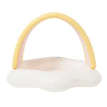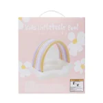 Flot SunnyLife badebassin i formet som en hvid sky og har en regnbueformet med lilla, rosa, guld og hvide farver.